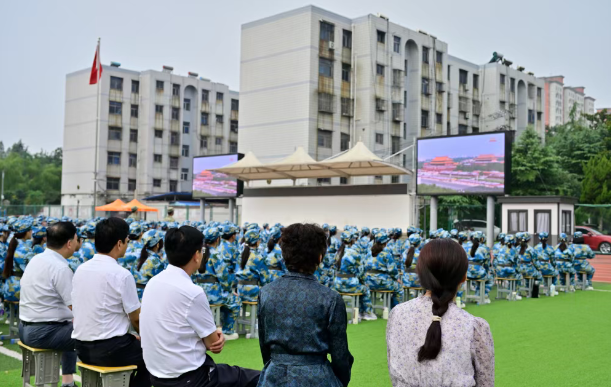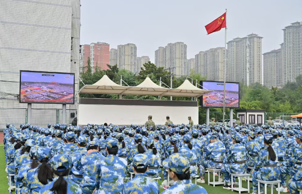 2025年9月3日,是中国人民抗日战争暨世界反法西斯战争胜利80周年纪念日。上午9时,学校组织全体师生收看纪念抗战胜利80周年阅兵式。其中,学校党政领导班子及高一年级新生在学校田径场集中观看,其余年级学生在教室同步收看。